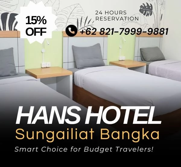 Siap merencanakan liburan hemat di Sungailiat? Hubungi Hans Hotel di 0821-7999-9881 untuk reservasi dan dapatkan penawaran terbaik sekarang!